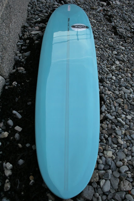 Mister Griffster sent this to Mr. Black via surfapig@live.com:"Hey Mike, I've been following your blog for several years now, and been meaning to post these pigs to you for a while, I have no excuse apart from being a lazy ass... Here's 2 from the quiver, one that Rob Lion (Royal) shaped for me back last year - It's a Post Modern Pig 9'6" x 23 x 16 7/8 x 16 / 1/2. Nicely pinched rails, concave to belly roll with tail lift, with scooped tail and very slight S-deck about 22-25lb. Rocker is probably a little flatter up front than normal and absolutely flies when pressing the accelerator. Rob's now working over at Santa Cruz Board Builders so check him out if you're in the area. The other is your standard Michel Junod Pignar - 9 8 1/2 x 22 3/4 x 16 1/2 fore and aft with the standard step concave through to roll and traditional piggy rocker at about 25lb. Weighted beautifully to generate it's own trim speed and noserides better than some out and out noseriders I've ridden. Both boards leave you grinning from ear to ear!